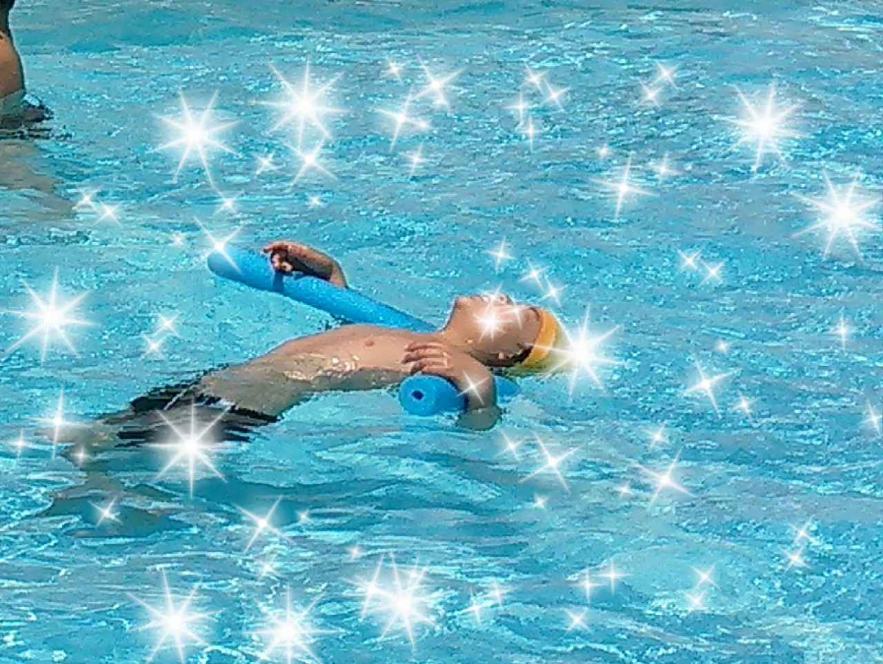 上手にヌードル(浮き具)を使い、とても気持ち良さそうですね( *´艸`)