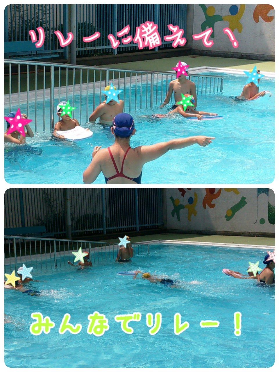 この夏は、皆で水の掛け合いっこ・潜れるようになる事も考えたゲーム・バタ足リレー!水中でも色々な事にチャレンジしました♪